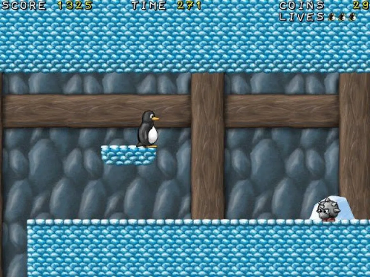 Run and jump through SuperTux, the sidescrolling 2D platformer starring Tux the penguin. Squish enemies, collect powerups, and solve platforming puzzles throughout the Icy Island and the Rooted Forest, as Tux tries to save his beloved Penny from her captor, Nolok!