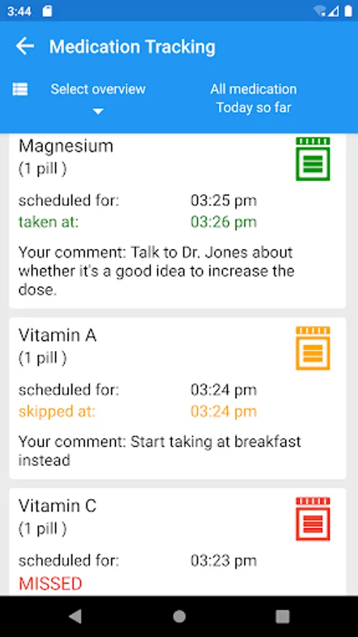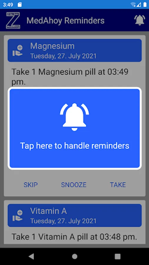 • Limitless flexible medication reminders for all your medications. Med reminders can be set for both medication intake and medication refill.