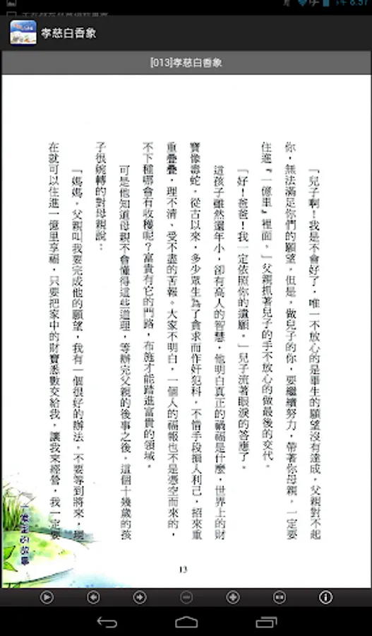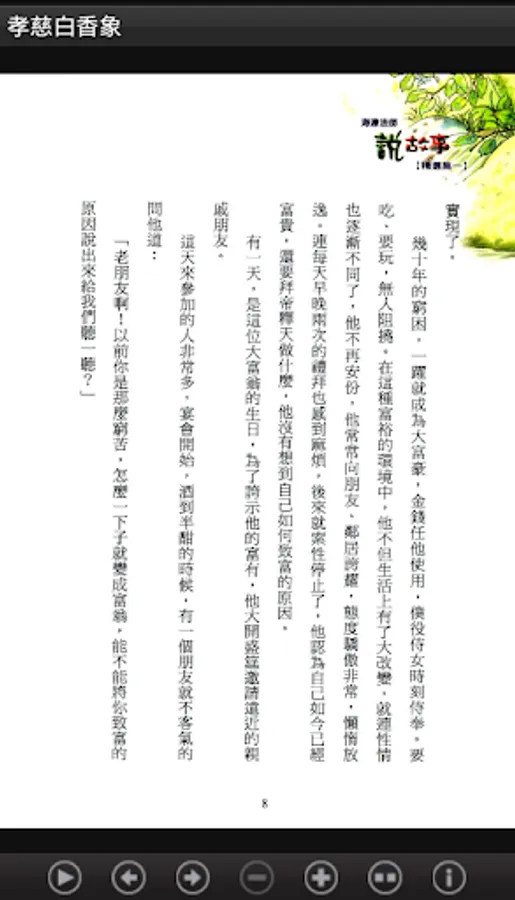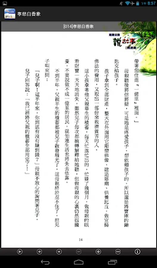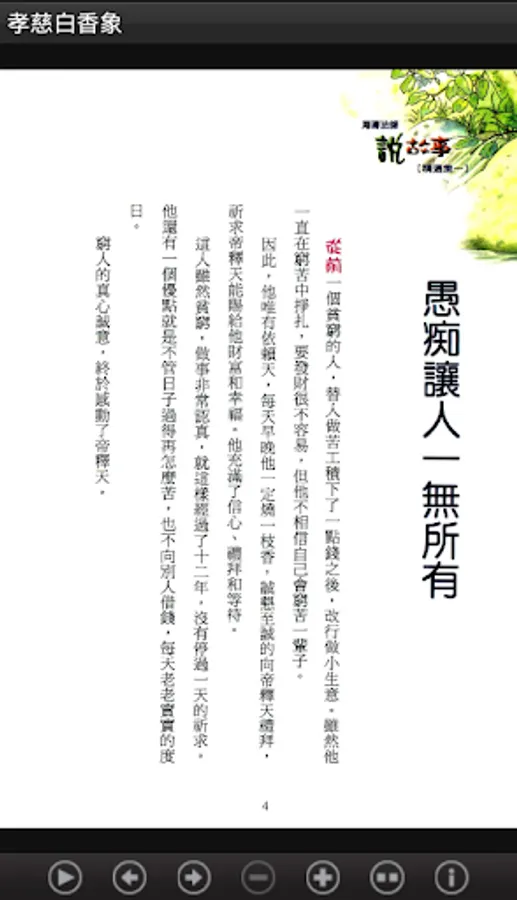 Speaking of this series of storybooks with very simple way to describe each one narrative story, so the book can be used as reading, can also be used to do for the reader to tell a story, so the written mode, keep it simple, with simple terms way dialogue, will be the story of the Buddhist idea of the form of vivid carved out subtly depth public's heart.