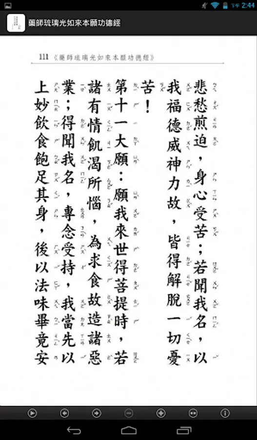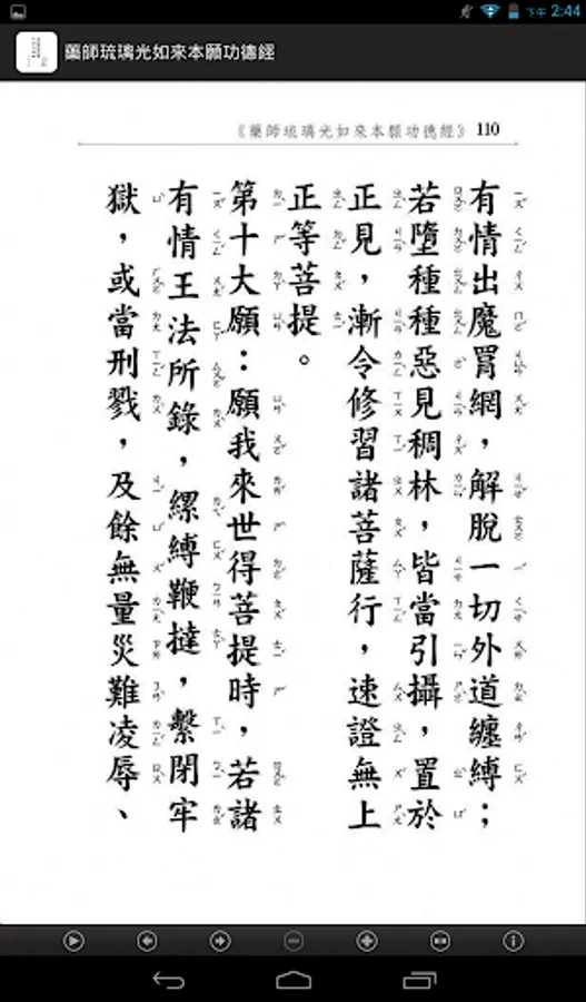 「第十大願:願我來世得菩提時,若諸有情王法所加,縛錄鞭撻,繫閉牢獄,或當刑戮,及餘無量災難凌辱,悲愁煎逼,身心受苦;若聞我名,以我福德威神力故,皆得解脫一切憂苦!」
