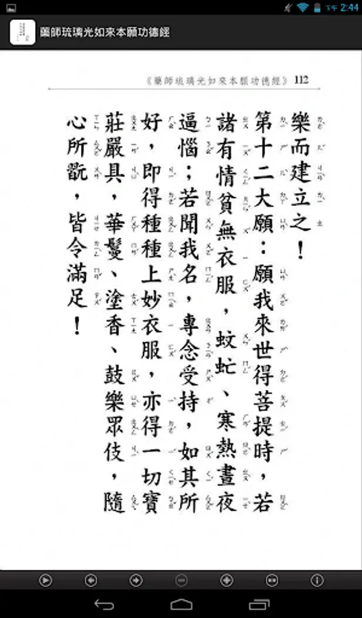 「第十二大願:願我來世得菩提時,若諸有情貧無衣服,蚊虻寒熱,晝夜逼惱;若聞我名,專念受持,如其所好即得種種上妙衣服,亦得一切寶莊嚴具,華鬘、塗香,鼓樂眾伎,隨心所翫,皆令滿足」。