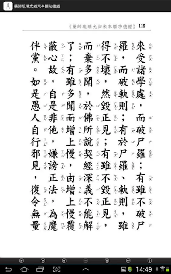 「復次、曼殊室利!若諸有情,雖於如來受諸學處,而破尸羅;有雖不破尸羅而破軌則;有於尸羅、軌則,雖得不壞,然毀正見;有雖不毀正見而棄多聞,於佛所說契經深義不能解了;有雖多聞而增上慢,由增上慢覆蔽心故,自是非他,嫌謗正法,為魔伴黨。如是愚人,自行邪見,復令無量俱胝有情,墮大險坑。此諸有情,應於地獄、傍生、鬼趣流轉無窮。若得聞此藥師琉璃光如來名號,便捨惡行,修諸善法,不墮惡趣;設有不能捨諸惡行、修行善法,墮惡趣者,以彼如來本願威力令其現前,暫聞名號,從彼命終還生人趣,得正見精進,善調意樂,便能捨家趣於非家,如來法中,受持學處無有毀犯,正見多聞,解甚深義,離增上慢,不謗正法,不為魔伴,漸次修行諸菩薩行,速得圓滿」。