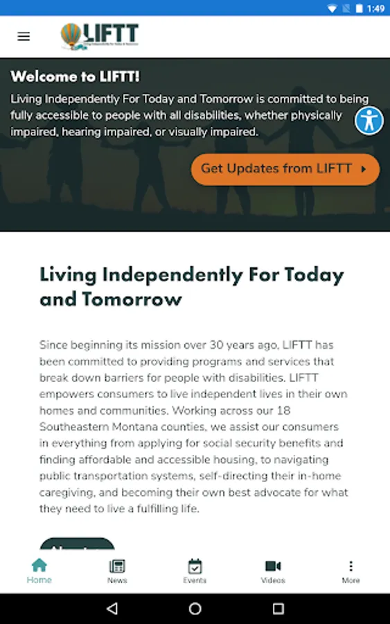 Living Independently for Today & Tomorrow, Inc. is a Montana nonprofit organization committed to empowering persons with disabilities to live freely and equally in Southeastern Montana through the provision of independent living services which reduce societal barriers. Download the LIFTT app to stay informed with new developments in our programs and services and find out what LIFTT can do for you today! The LIFTT app offers a wealth of information and resources focused on helping individuals with disabilities live their lives to the fullest.