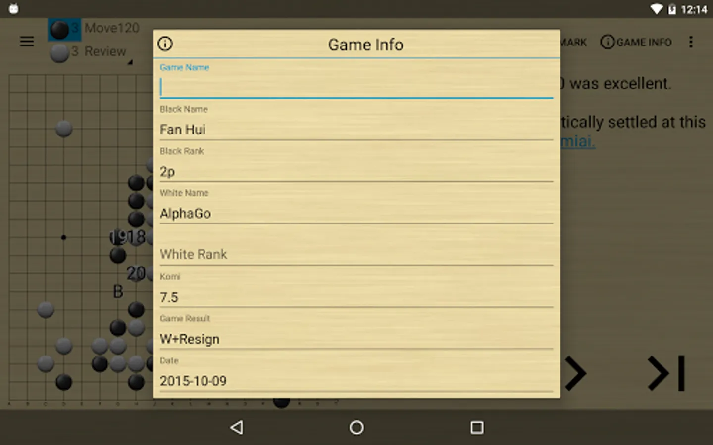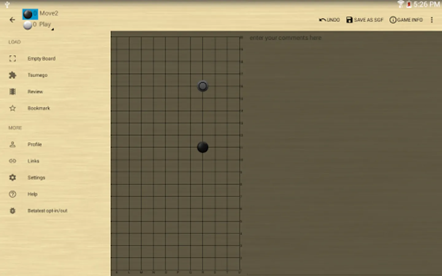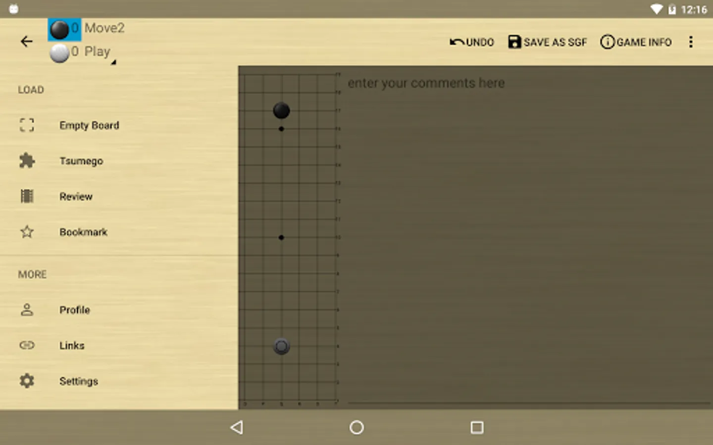 Gobandroid is a Free Software goban ( aka GO-Board ) for Android to learn and play the beautiful ancient game of Go (weiqi / wei-chi in Chinese, igo in Japanese, baduk in Korean)