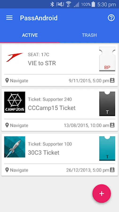 This app is a viewer for passes - a pass could be a e.g. boarding-pass for your next flight, a coupon for a nice hot beverage on the destination, a movie ticket, a membership card - there are a lot of possibilities.