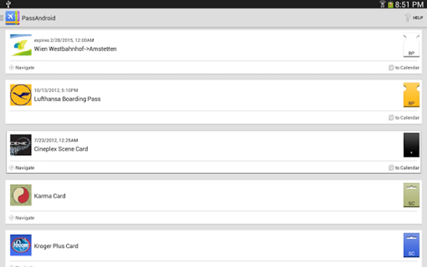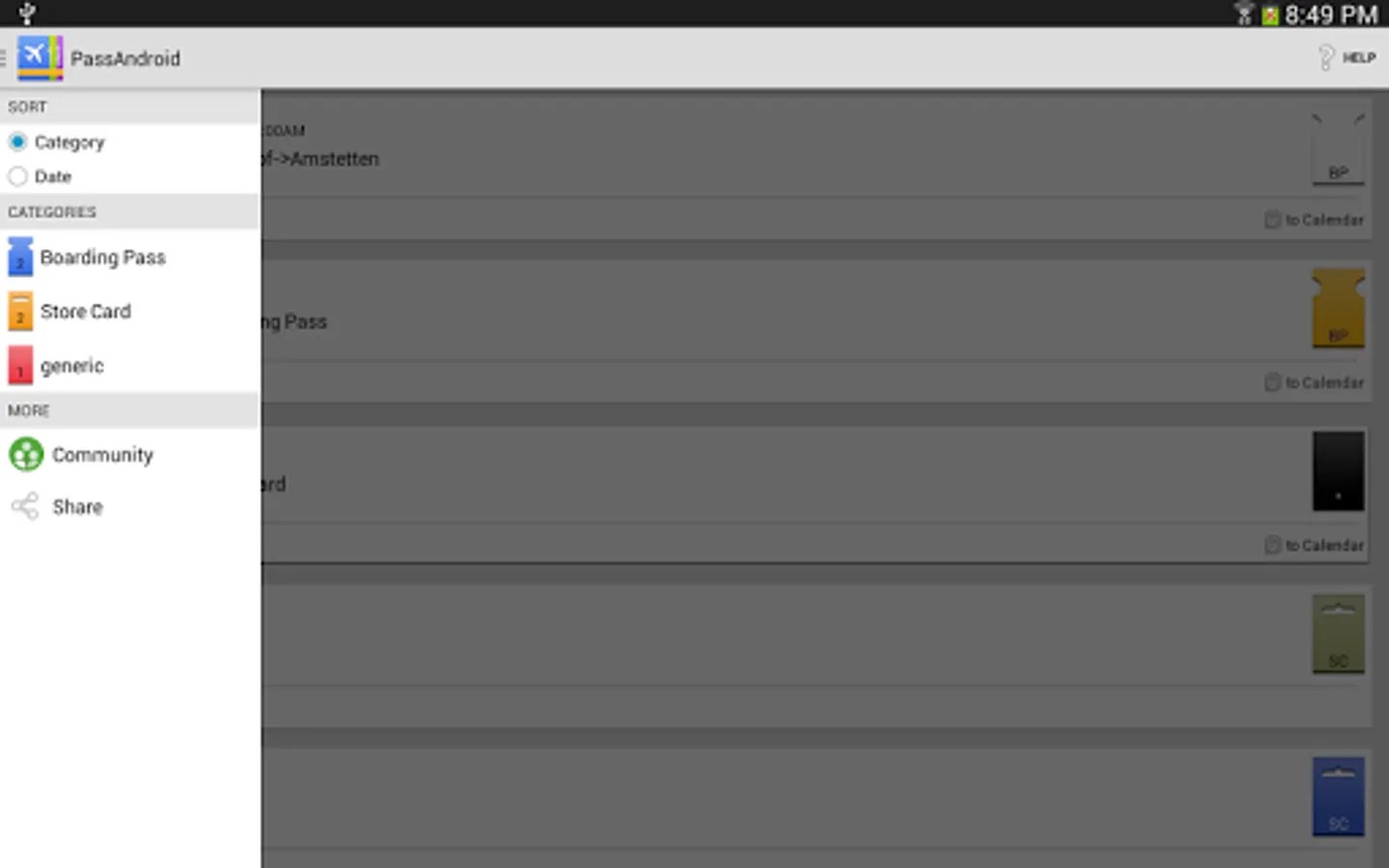 This all was leading to PassAndroid - a completely new version - with a new look and new functions ( sorting and adding to calendar alongside pull to refresh a navigation drawer and contextual ActionBar menu )