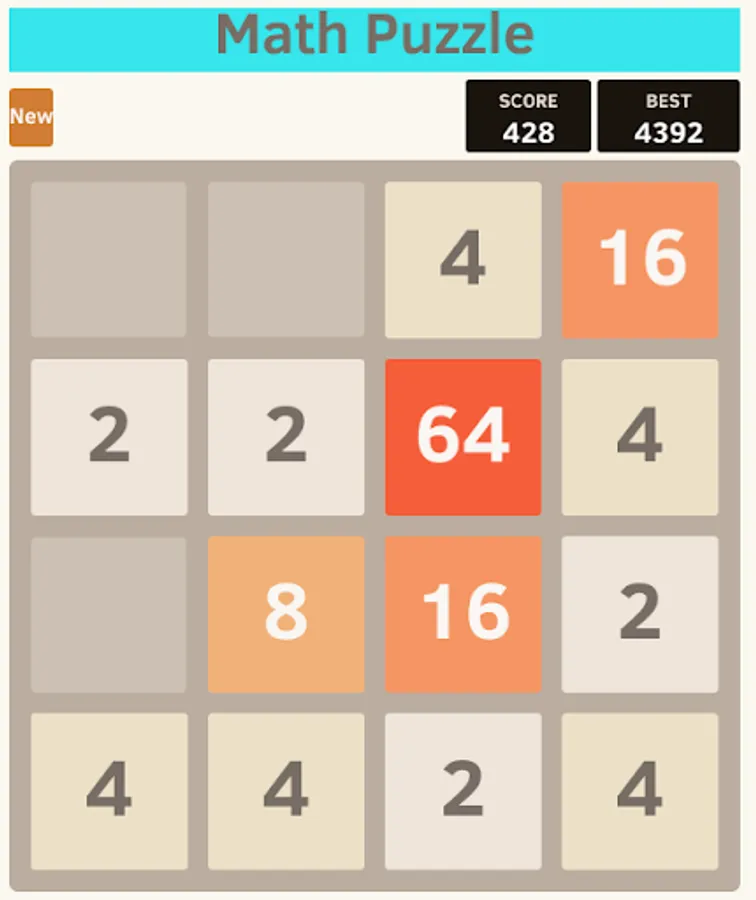 Swipe to move the tiles, Each time 2 tiles with the same number touch, the numbers are added and the two tiles merge. Produce the magic number of 2048. Good luck!