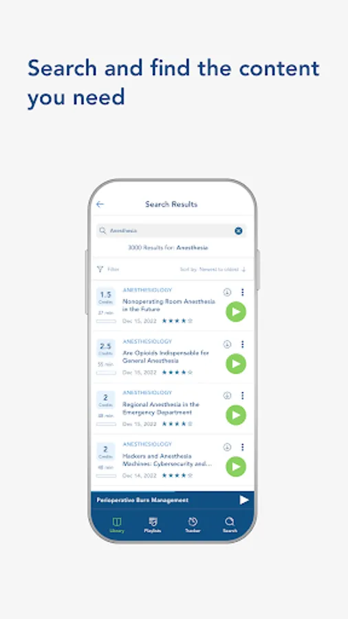 - Earn CME/MOC directly within the app, including downloading or emailing transcripts.