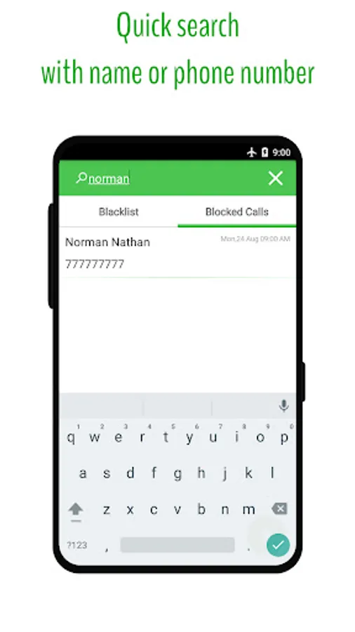 * Quick search for blocked calls and phone numbers in the blacklist.
