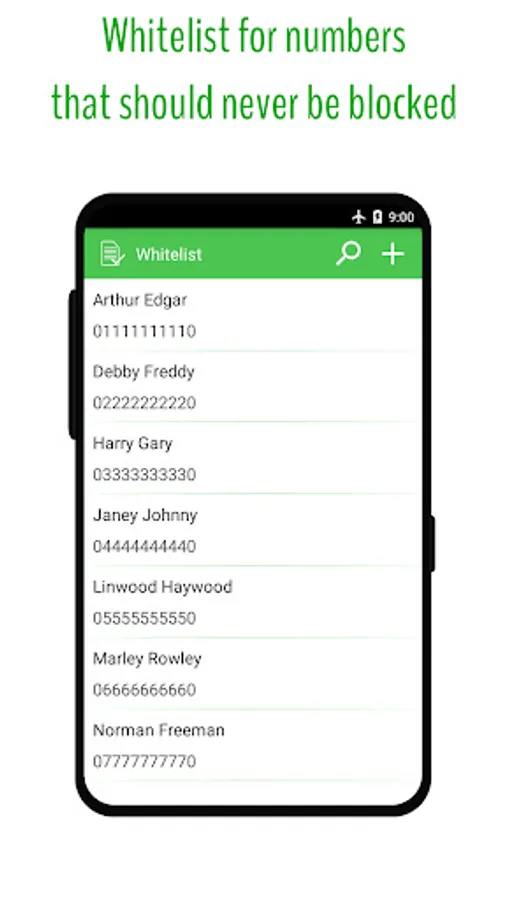 * Whitelist for phone numbers that should never be blocked.