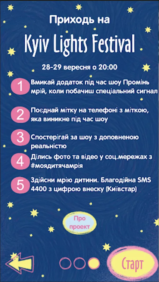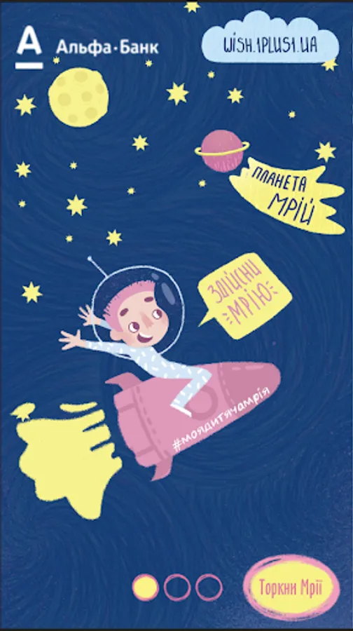 For the first time in the history of mankind, 100,000 children's drawings of dreams will fly into space. The visualization of the grand event will take place on September 28-29 at 20:00 on the main street of Ukraine. Come and witness unique action. To see even more miracles, download the free Promin Mriy mobile app and then point your phone camera at a special image that will appear on the building and watch your childhood dreams come to life in augmented reality!