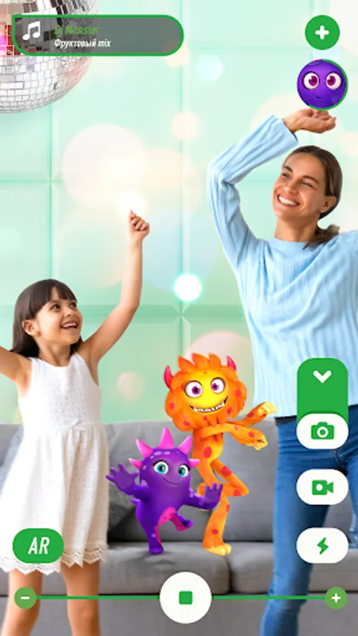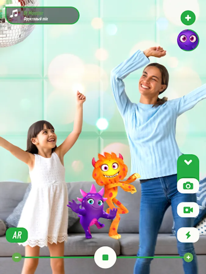 Improvise and construct entire dancefloors wherever you are, use your imagination to amaze your friends. Capture photos and videos with the dance monsters and share them in your social networks to make friends join your dance-party.