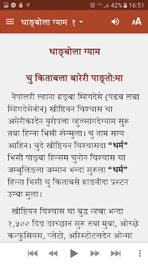In many countries, there has been a catastrophic loss of knowledge concerning the historical basis of Christianity. This app gives an overview of the history to the present day. This Purbi Tamang version uses highlighted text and audio giving the choice of reading or listening.