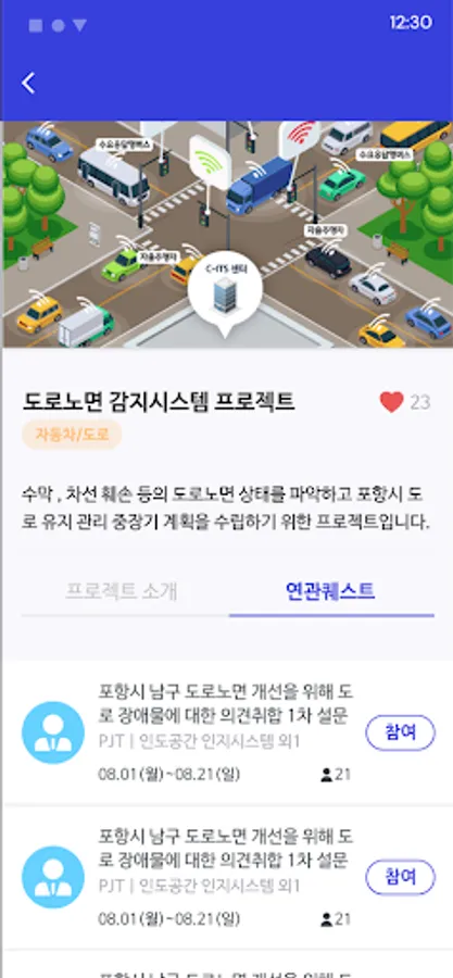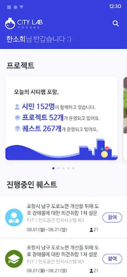 It is a platform for city development communication in Pohang where citizens can directly participate in the smart city technology development process in Pohang and easily present their opinions and feedback.