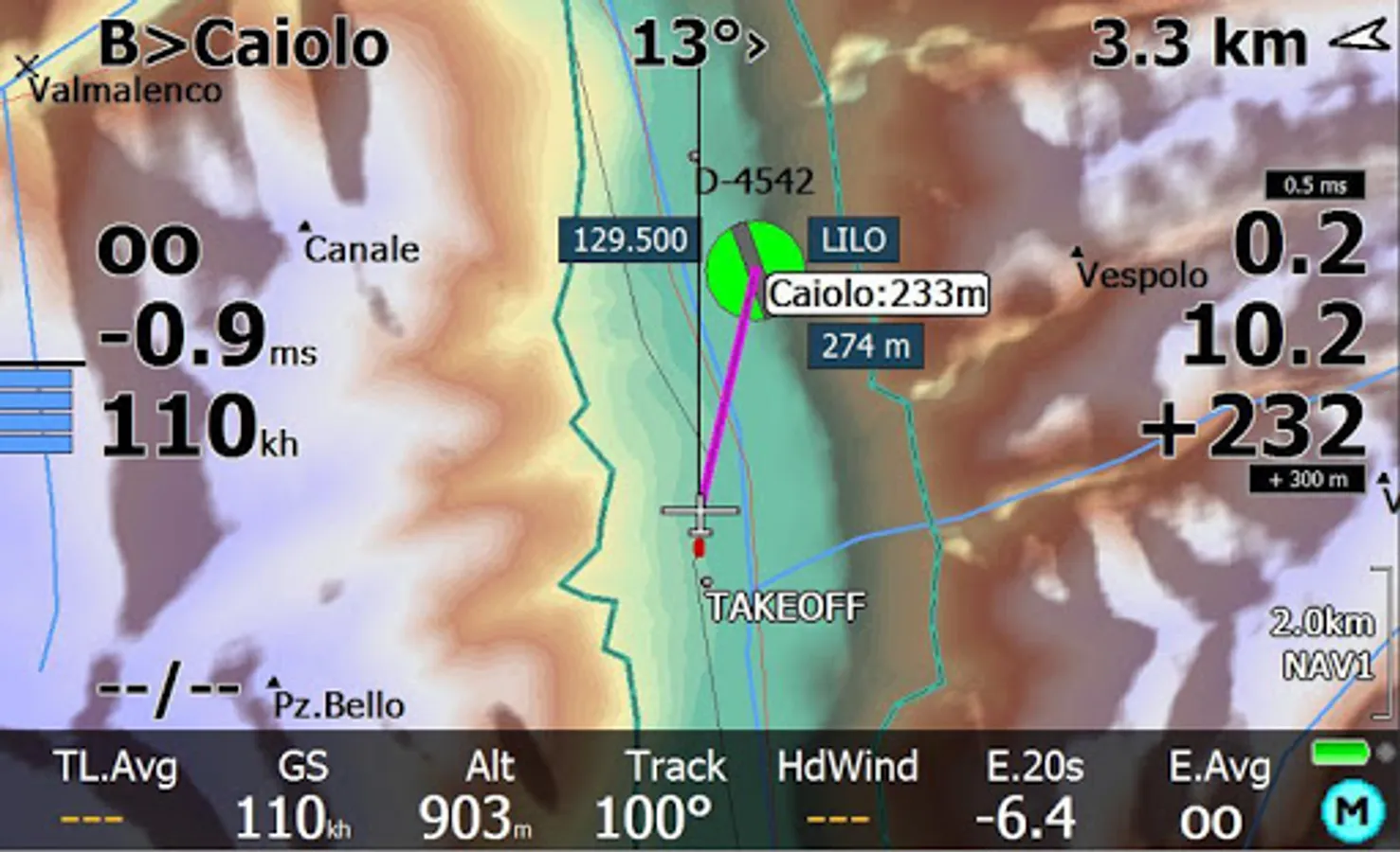- Textual list and selection of all of your thermals, for a prompt go-to, automatically named after their timestamp, with distance and direction from you, historic climb average and forecasted arrival altitude at the bottom of the thermal, all sortable, and ready for a go-to .