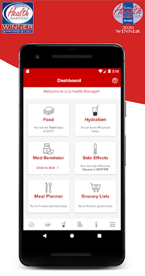 Manage your health by tracking your side effects, medication, food and hydration, questions for your doctor, grocery lists and more using LLS Health Manager brought to you by The Leukemia & Lymphoma Society (LLS).