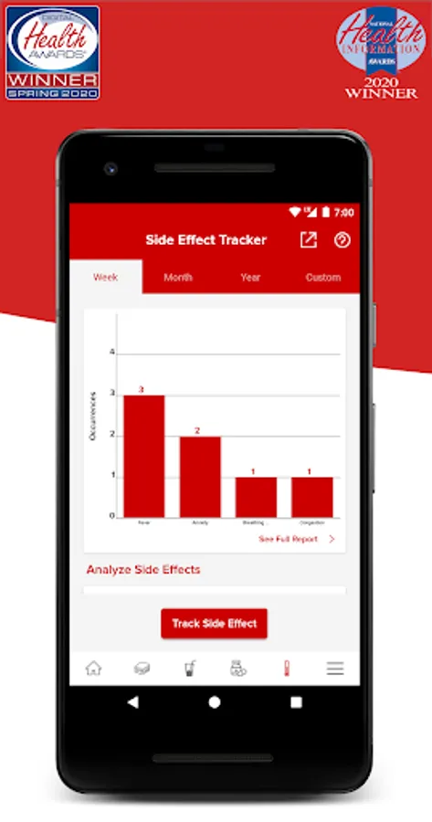 • Side Effects Tracker: Monitor and analyze side effects in relation to medications, food intake, hydration and time of day.