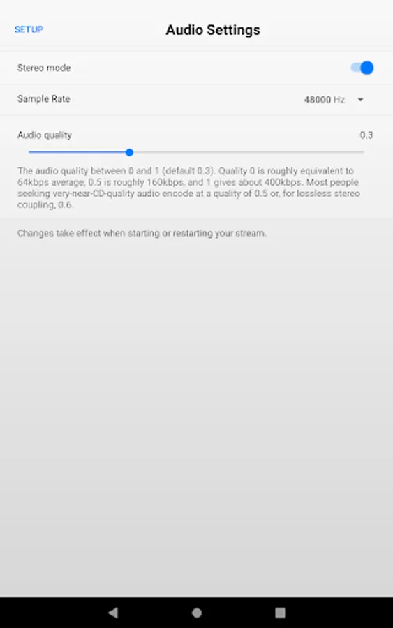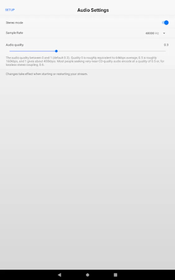 - High quality mono/stereo stream