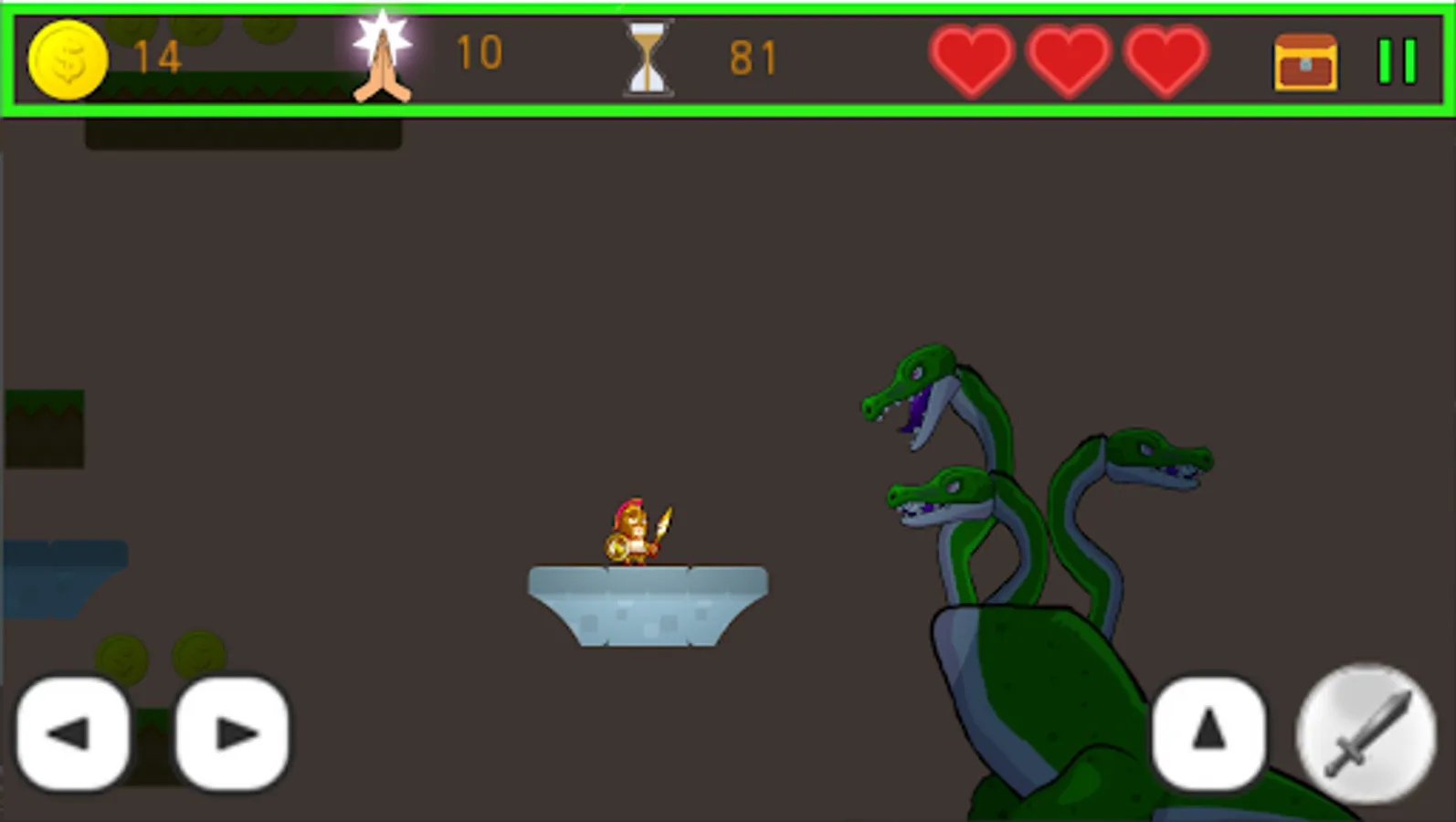 Early Access Platform Game. You are Theseus - Greek hero, tasked with releasing the Greek Gods trapped by the Titans. Work you way through the Greek Islands, fighting monsters and exploring the landscape for power ups, gold and glory. Purchase power ups and health between levels.