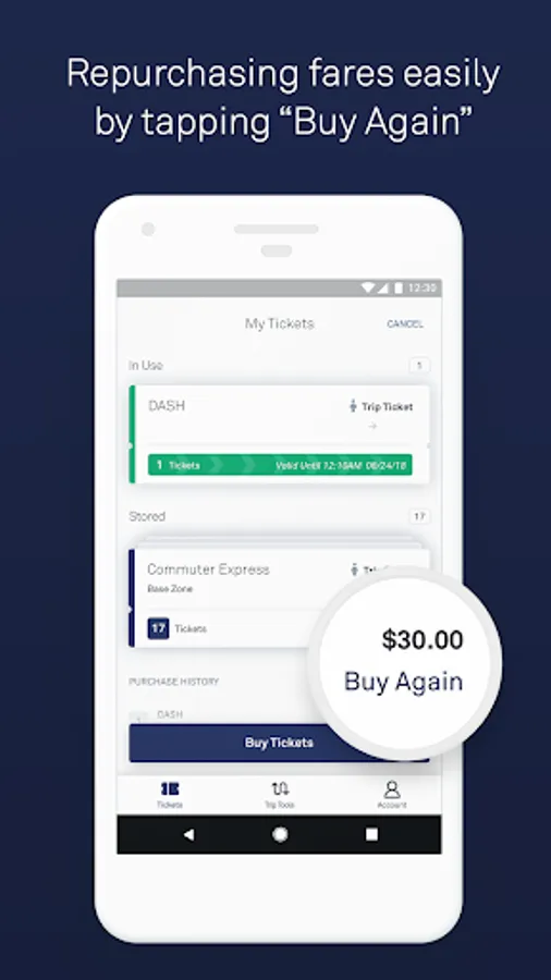 • We suggest you create an account before purchasing tickets, as this is the only way you can transfer your unused tickets if you get a new phone. (Note: Only unused tickets can be transferred. Use up any activated tickets before switching phones).