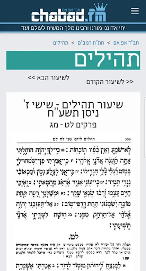 Chabad Chitas (Chumash, Tehillim Tanya, Rambam one chapter, Rambam three chapters), Chabad Forum, Library.