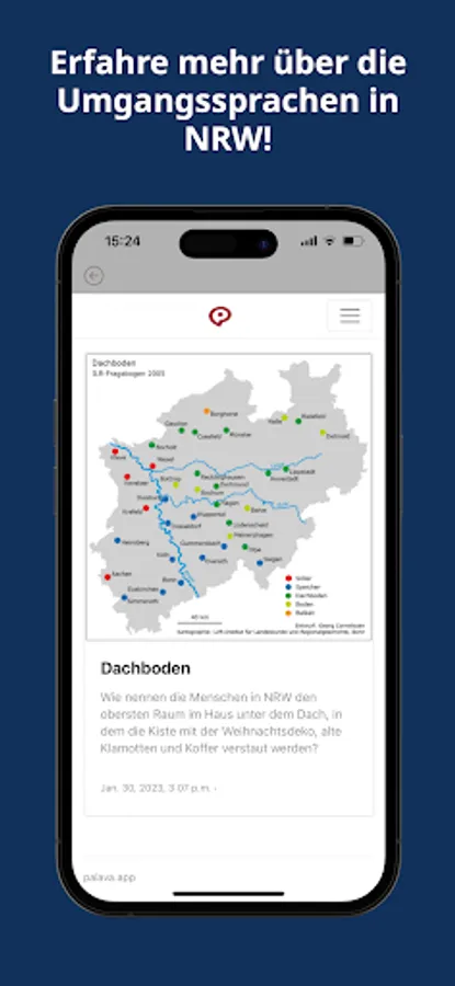 The PALAVA app is intended to provide insights into how people in North Rhine-Westphalia speak on a daily basis. That can sound very different between Aachen and Minden, between Kleve and Siegen.