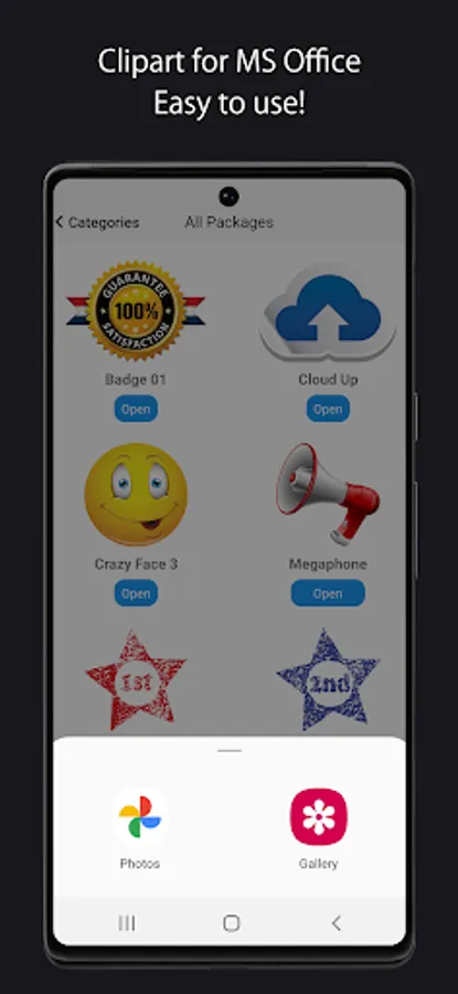 Clipart for MS Office app contains an outstanding collection of pictures, web elements, patterns and video backgrounds that will help you to illustrate your awesome projects. Pictures and videos can be used with Google Docs, Slides, Microsoft Word, PowerPoint, Meta, Facebook, Instagram, Twitter and other.