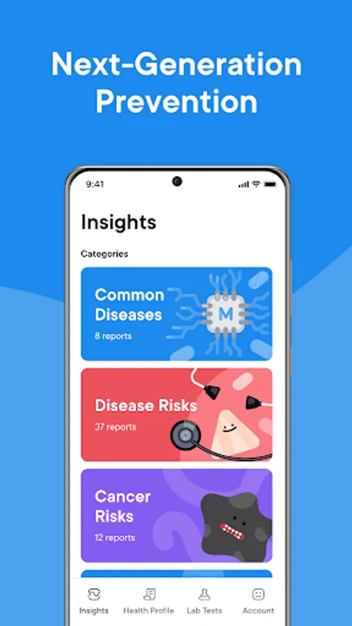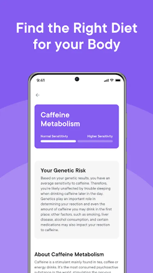Get actionable recommendations from the DNA test to improve your health, build better life habits, and prevent diseases. All our recommendations are divided into easy-to-navigate categories: get reports of disease risks, suggestions on how to align your lifestyle with your health goals, and learn more about your genetic origin. Preview all the reports in our app before committing to purchase a DNA test!