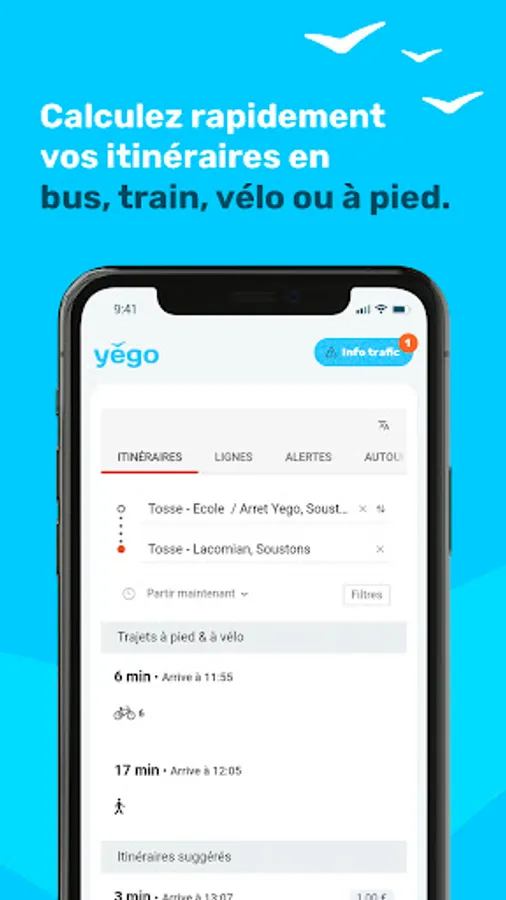 - Be informed in real time of any alerts or disruptions on your lines or routes.