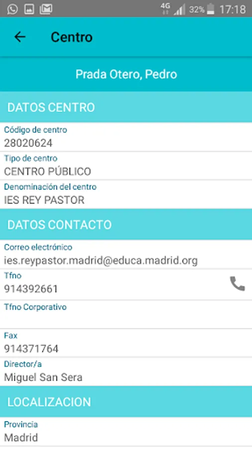 Communication service between the educational centers of the Community of Madrid and families, which allows the centers to communicate with the legal guardians of a student and with the centers.