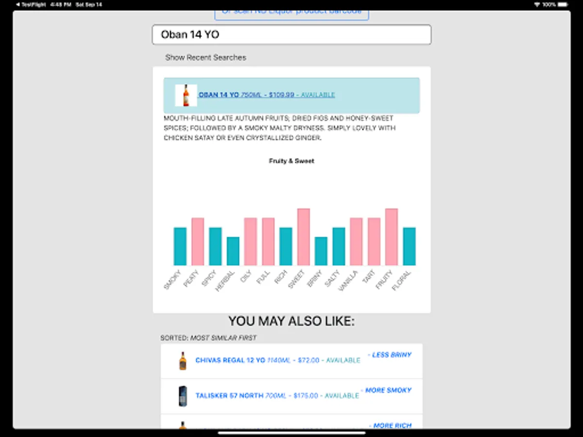 Explore details about your favorite liquor, and find it in the closest ANBL store. The app specially made for whisky drinkers, it provides taste profiles and comparison algorithm for most whiskies. This App is a mobile frontend for the spiritsearch.ca website.