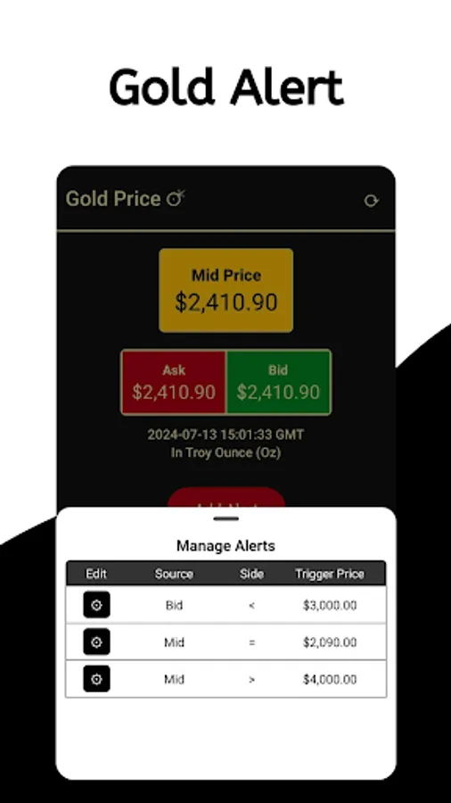 Stay on top of the gold market with our powerful Gold Price Alert app! Get real-time gold rates and set custom alerts to never miss a market move.