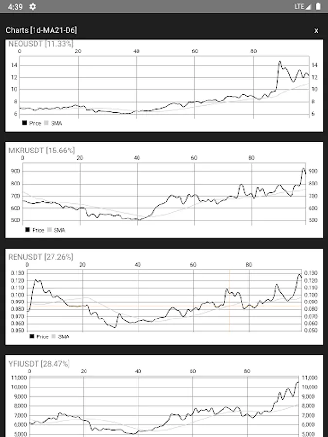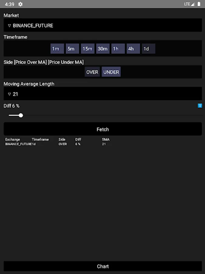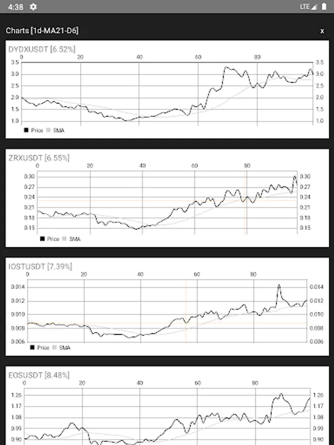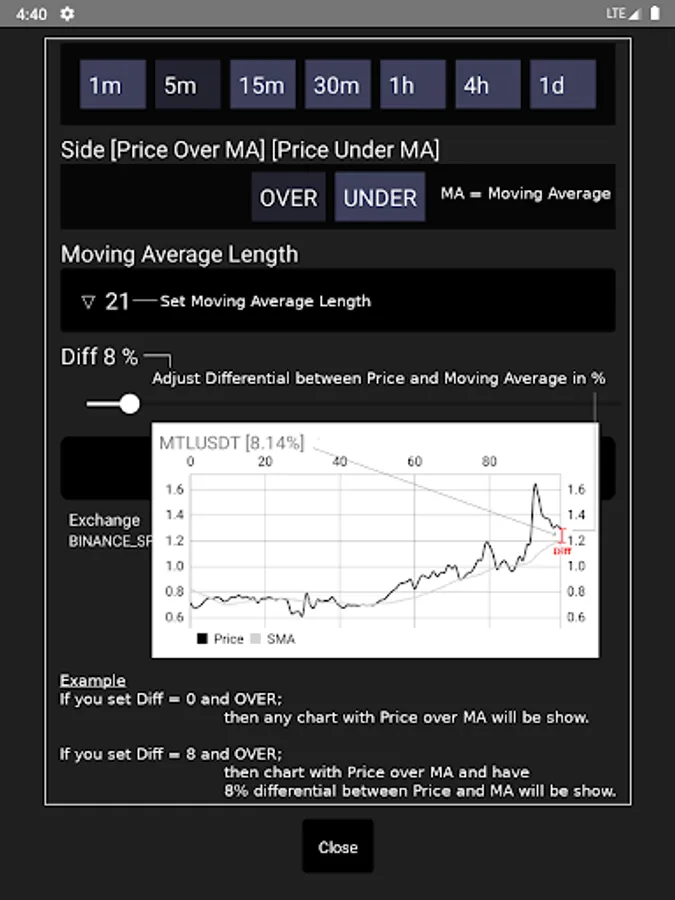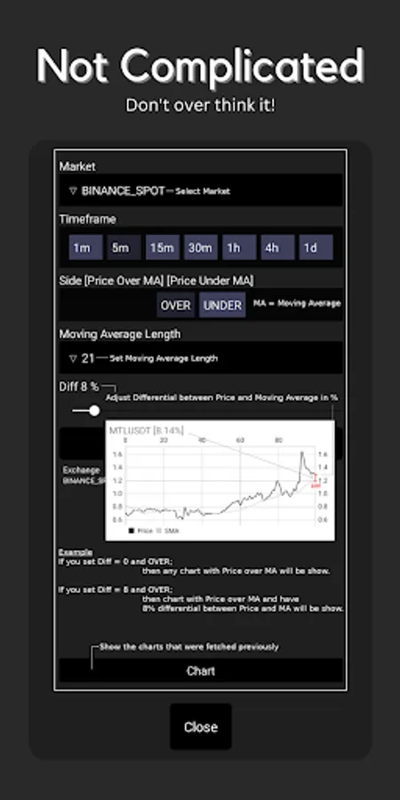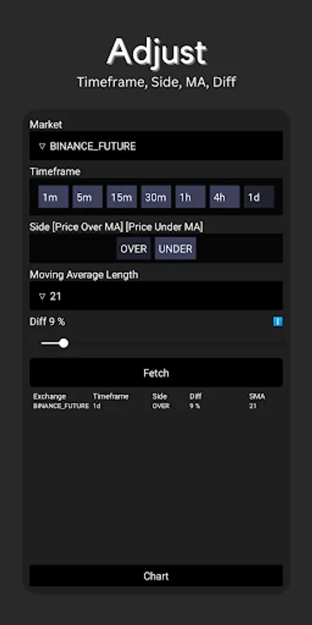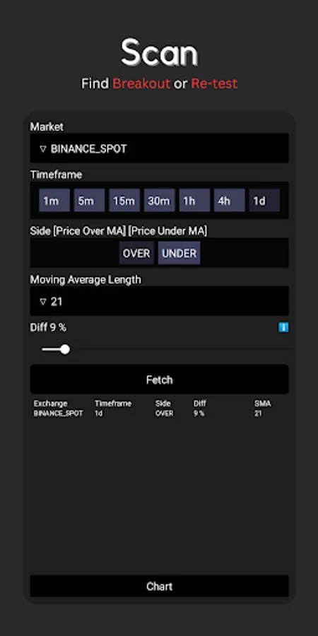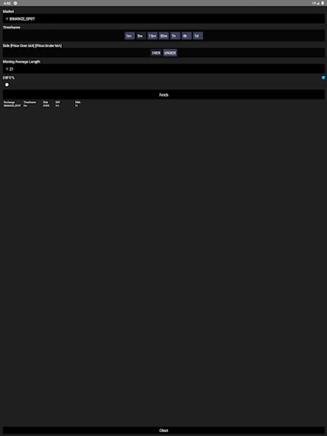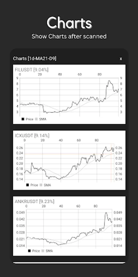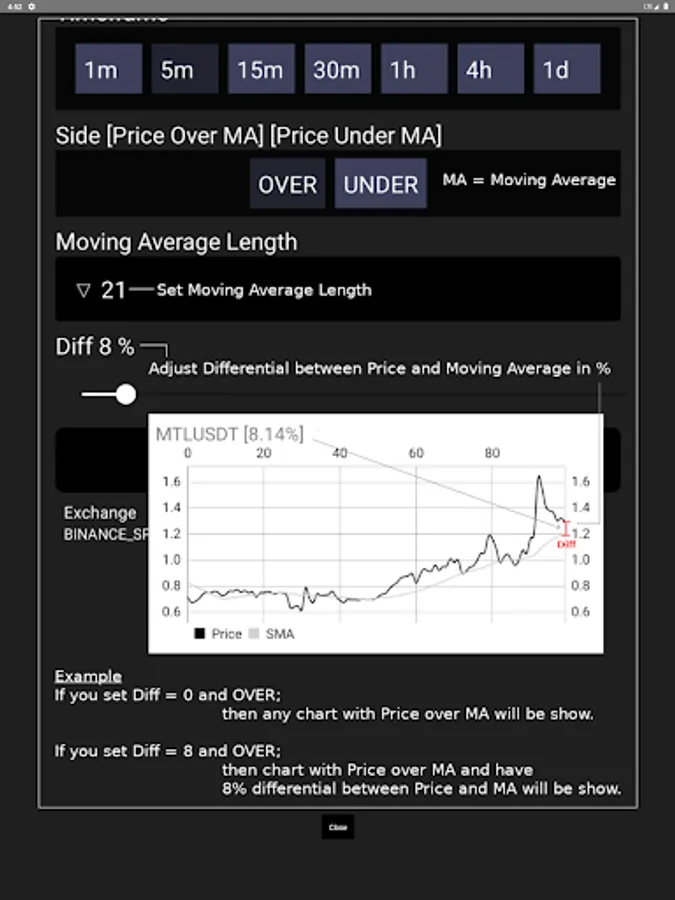 • Scan for moving averages in cryptocurrency: Our app allows you to scan for moving averages in cryptocurrency with a customizable percentage. This means that you can find the best opportunities to trade based on the current market conditions.