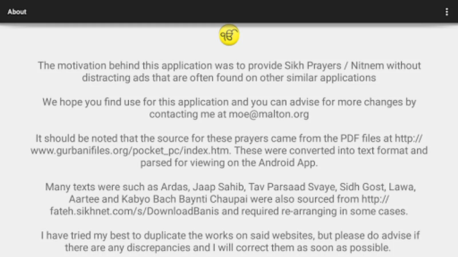 The motivation behind this application was to provide Sikh Prayers / Nitnem without ads which are very distracting and often found on other similar applications. This application is and always will be ad-free.