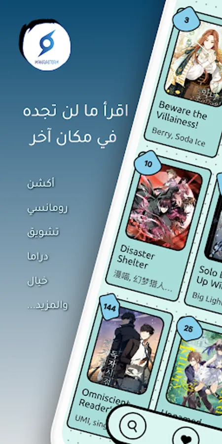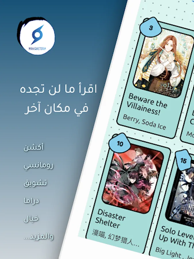 اقرأ أحدث المانجات والمانهات والمانهوات المترجمة حصرياً على تطبيقنا للقراءة. تحديث يومي تجد فيها معلومات وفصول مثرية ومميزة. ابحث بالتصنيف والاسم وتعقب الفصول المقروءة مجاناً وبدون تسجيل.