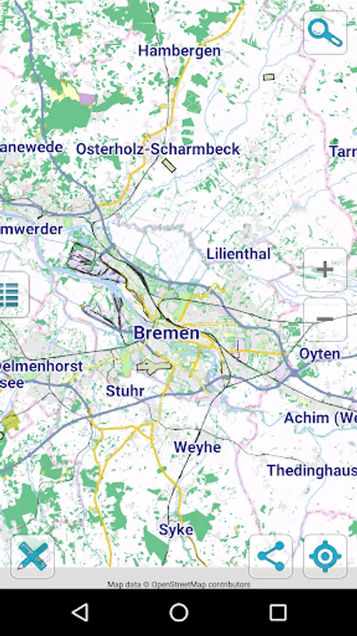 Map of Bremen offline works without connecting to the Internet. No need to pay for internet in roaming.