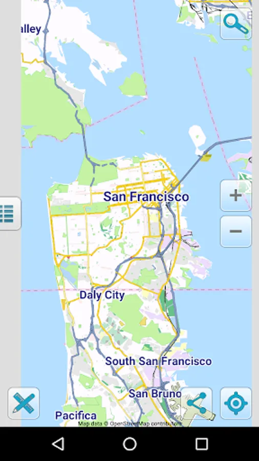 Map of San Francisco offline works without connecting to the Internet. No need to pay for internet in roaming.