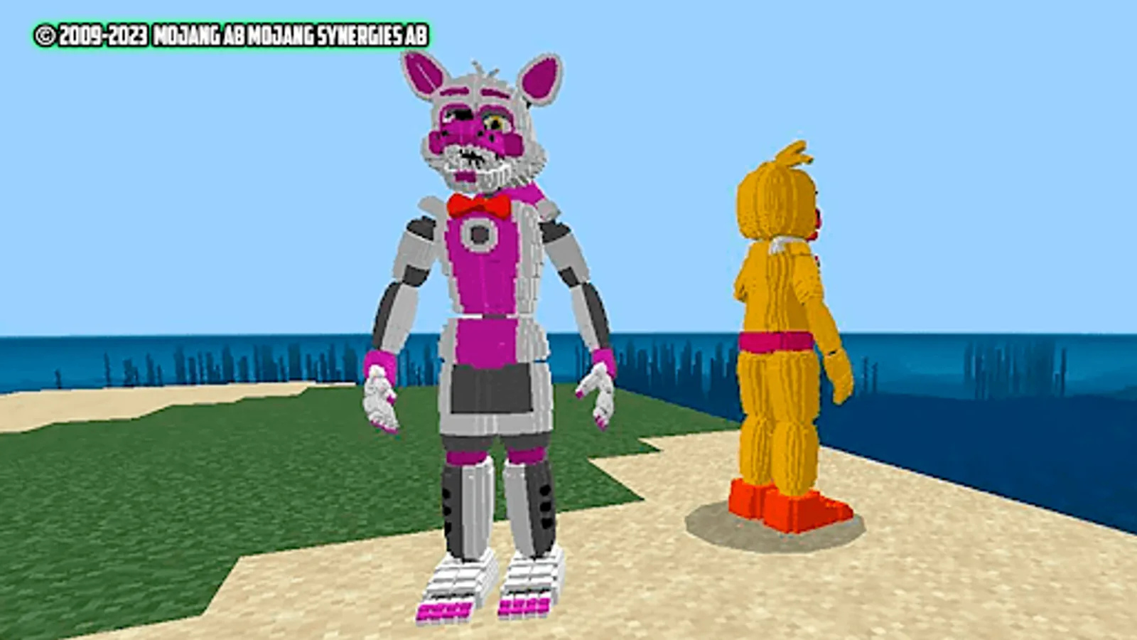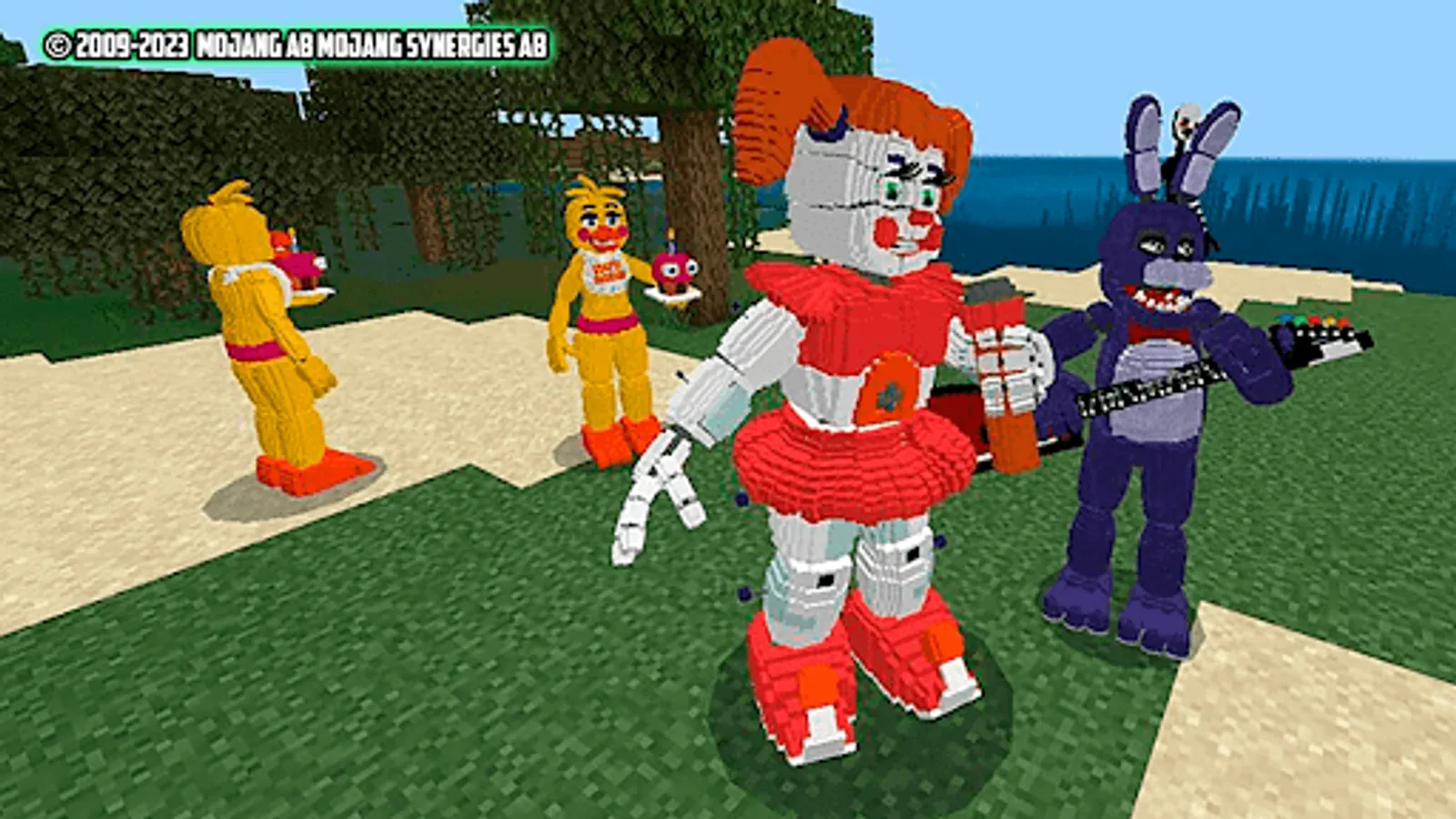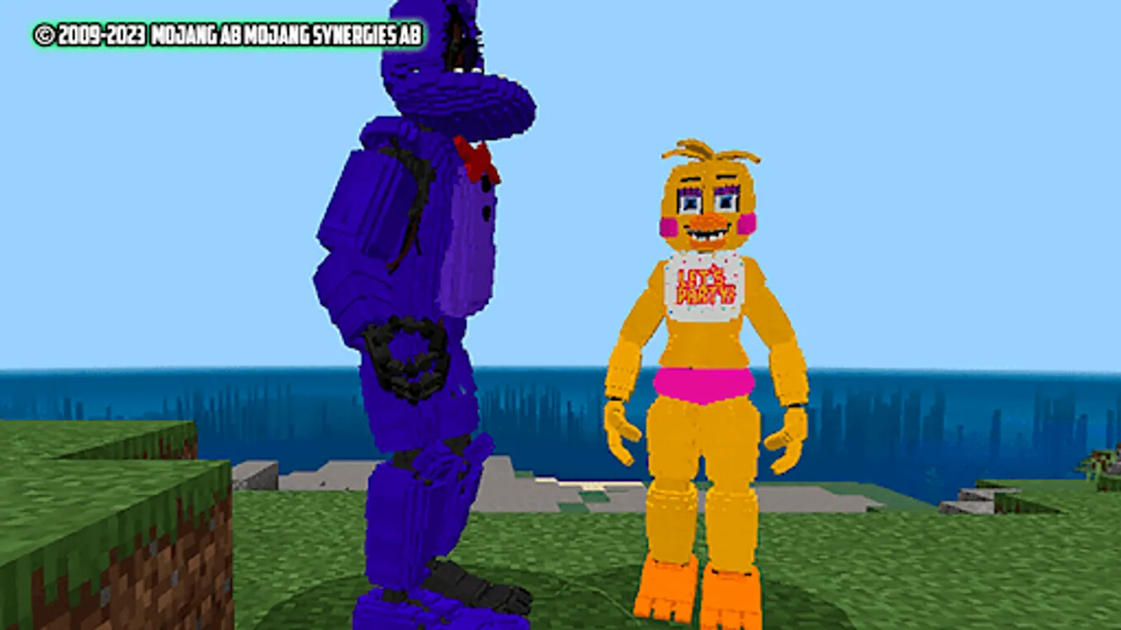 Do you want to make your world very diverse? Great! Now you can diversify your game and add the most popular pizzeria and animatronic mod for minecraft. Just imagine that these cool entertaining robots for animatronics minecraft can appear in your game and you can get all of them? Let's find out. And of course, you can go to a pizzeria for five nights and meet creepy animatronic mods there. Imagine how you and your friends find yourself in a pizzeria alone with animatronics for mcpe? Start your game now! You will find a huge variety of eggs for spawn mod animatronics for minecraft and a popular maps for mcpe. Get started with your updated with many new animatronic mod for mcpe.