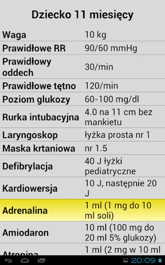 A simple application designed mainly for paramedics and emergency nurses. Its task is to facilitate the dosage of drugs used in life-threatening situations in children. Doses of drugs were determined based on the guidelines of the European Resuscitation Council 2010. The program also gives the size of the endotracheal tube and laryngeal mask, as well as the norms of pressure, respiratory rate and pulse. While creating the application, the textbook "Pediatrics" Medical Publisher PZWL, scientific editors Wanda Kawalec, Ryszard Grenda, Helena Ziółkowska were used. Please send all comments and suggestions to amostori@op.pl.
