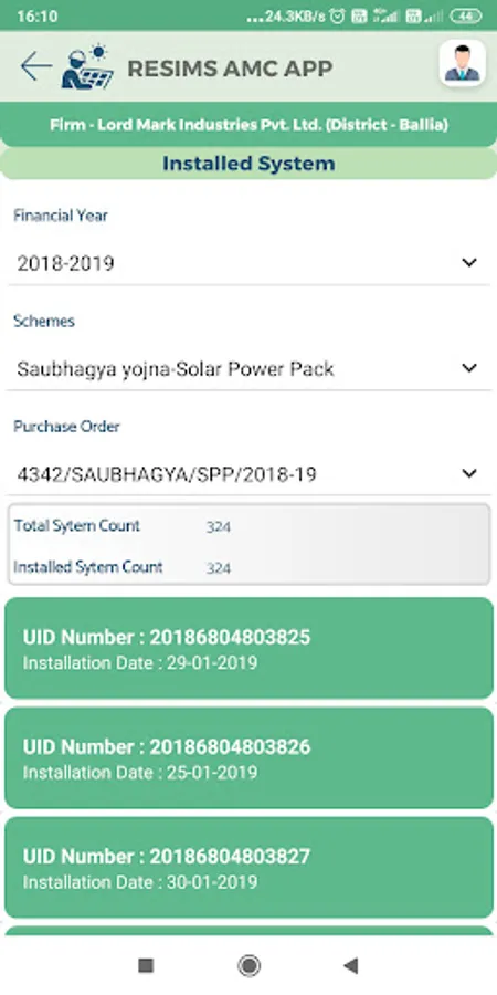 Wherein, the solar panels are distributed to the beneficiaries. These solar panels include devices like battery. The Solar panel needs to clean & checked on a certain interval basis. The device also needs maintenance six monthly & annually. Thus, the RESIMS AMC Application is developed in order to ease this process and keep a track & record of the maintenance visits. The application has the functionality to check the status of AMC Visit. The pending visits can be filtered easily & viewed by selecting the relevant criteria.