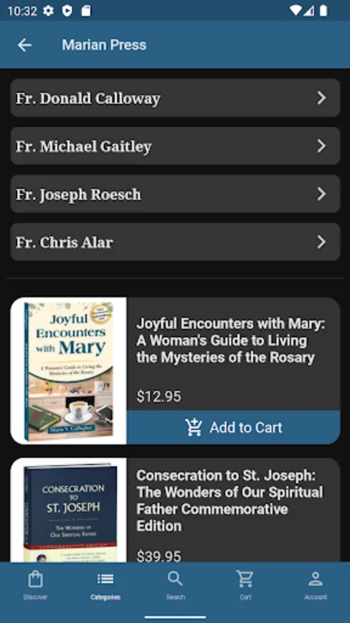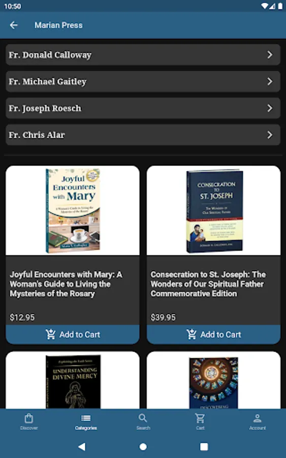 Browse new and classic books from Marian Press, including the latest releases from popular authors like Fr. Donald Calloway and Fr. Chris Alar, along with essentials like the Diary of Saint Maria Faustina Kowalska.
