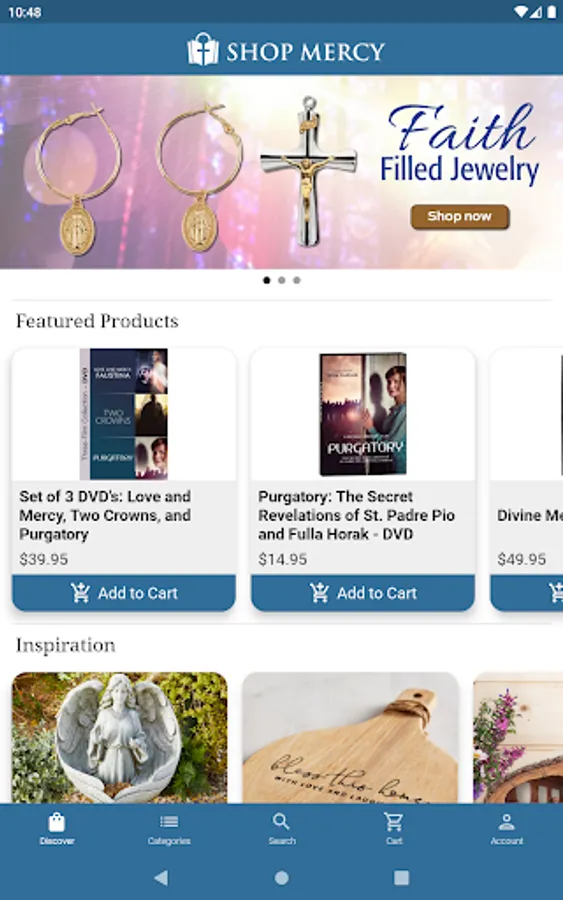 Shop Mercy is your one-stop shopping destination for the very best in spiritual reading and inspirational gifts for all ages, from Bibles, books, prayer cards, Mass cards, pamphlets, and DVDs to Rosaries, jewelry, Communion/Confirmation gifts, and canvas art.