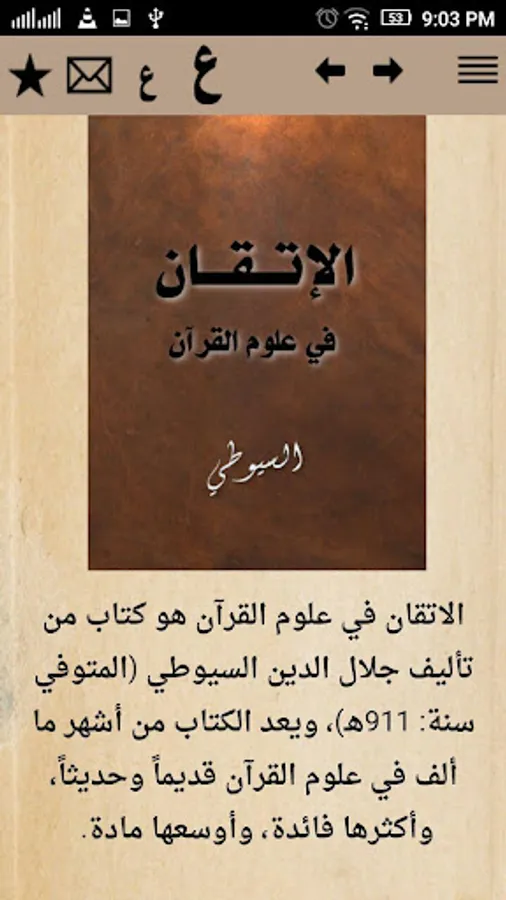 Proficiency in certain types of Quranic sciences, Kaaamh especially, and the layers of the commentators, interest in important matters, the symptoms are often about things you do not see vain. And his criticism of some of the statements recounted in his book, because of the weakness to say or because it does not document it, or for failure to say, and issued a lot of detective of the most important works in the genre underneath underneath it, and I've Suyuti pleased including Juma ways of research and study, being a collection of scientific material is difficult for many Viewing in Mazanha. The perfection of the mothers of books based in Koranic studies. In this Suyuti it has managed in many types of Quranic sciences summarize the words of the scholars easy words are clear.