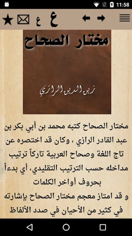 Mukhtar chapter, written by Muhammad ibn Abi Bakr ibn Abd al-Qadir al-Razi, and was shortened for the crown of the Arab language and sanitation, leaving the arrangement entrances by traditional arrangement, any words starting with the letters late