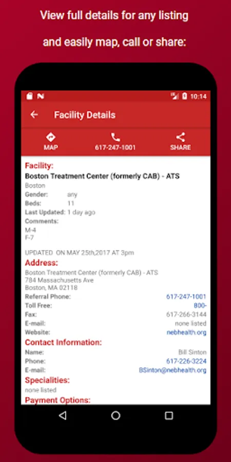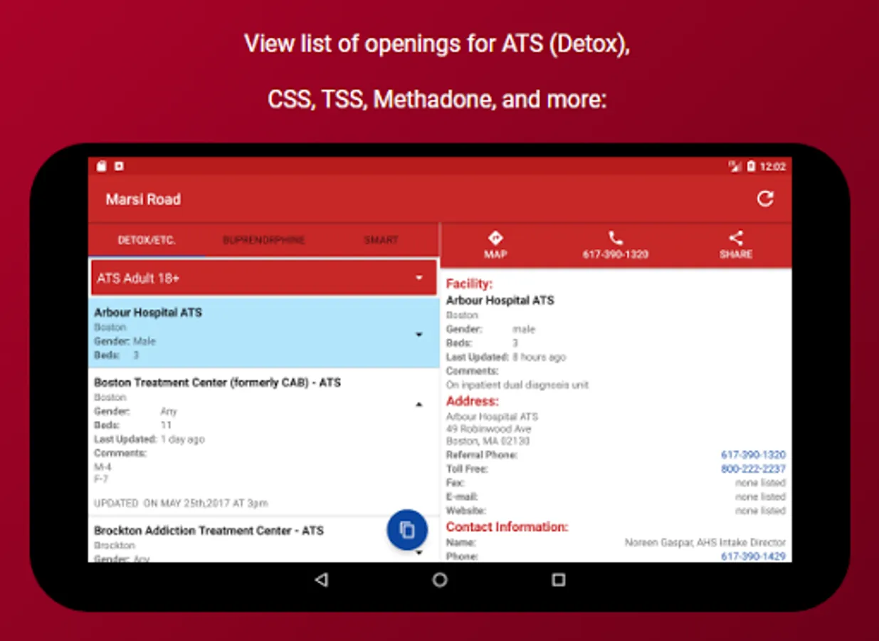 The open beds listing is updated every 15 minutes on the MARSI servers and therefore within the app, the listing should be at most 15 minutes old. Only facilities that are listed on the Massachusetts Behavioral Health Access web site are listed. Also, not all providers update their bed counts on a regular basis, so you should always call first before heading into a facility.