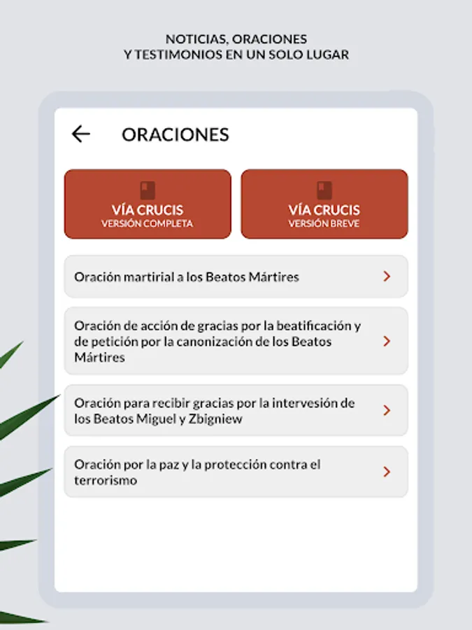 With this application you can pray for the intercession of the Blessed Martyrs of the Diocese of Chimbote in various intentions. Here you will find the text of the Triduum, the Stations of the Cross inspired by his last journey and other prayers. Thanks to the application you will also be able to know the biographies of the Blesseds, read the testimonies and other interesting texts about the Martyrs, see the news and find out about scheduled events related to the Martyrs.