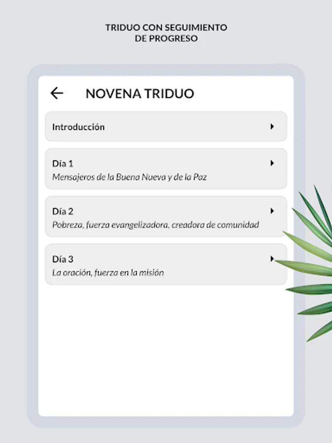 ✓ control over the prayer of the Triduum, the possibility of marking the days prayed or restarting everything