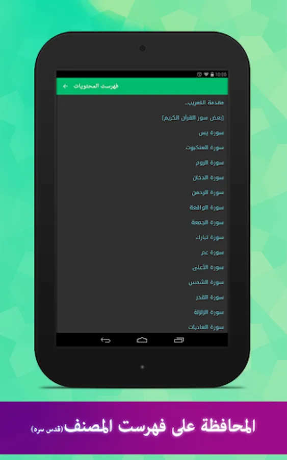 Due to the need for believers to capacity guaranteed by this holy book and the wide receiver for the first issue we take on our application development in line with modern techniques, he went out and thank God Almighty Hilla this beautiful and unique possibilities, we mention some of them: