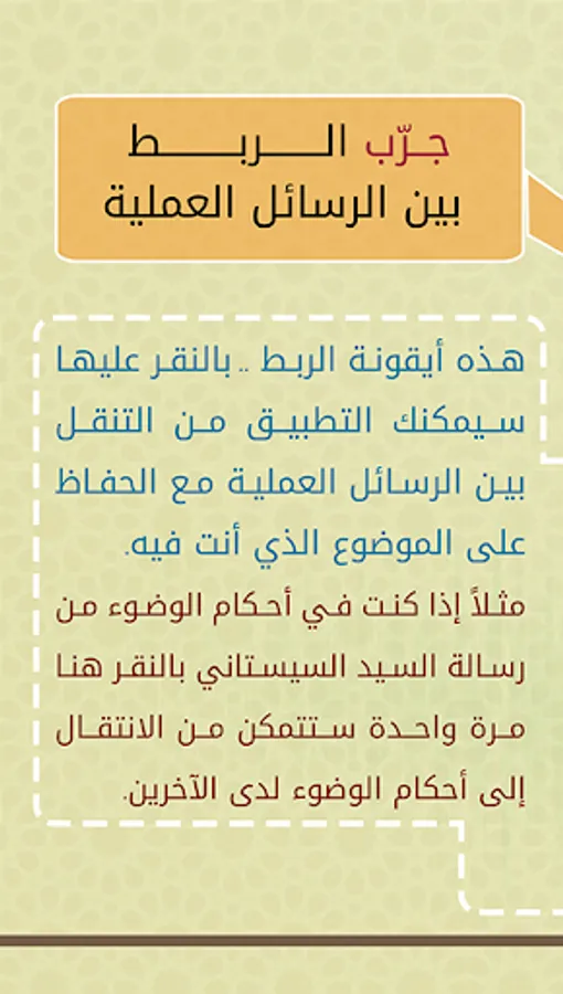 For example, when you are in the provisions of ablution from the curriculum of the Imam Khoei (holy sanctity) you can by clicking on the link icon to go to the provisions of ablution in the rest of the references.