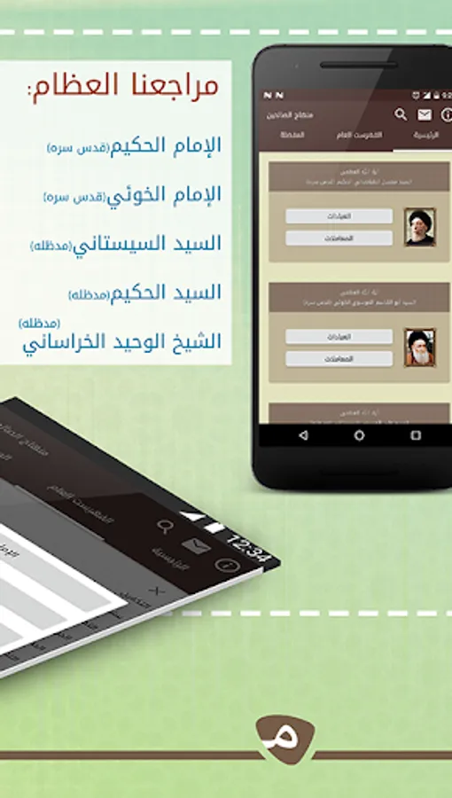 Imam al-Hakim (the holy of his secret), Imam al-Khoei (holy of his secret), Mr. Sistani (Mdazlh), Mr. Hakim (Mdazlh), and the only Sheikh Kharasani.